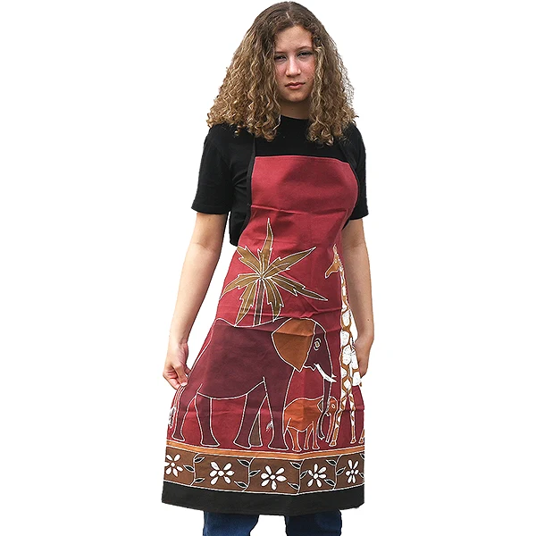 Our collection of Aprons is from Zambia and South Africa. The aprons from Zambia are hand made and hand painted on durable cotton using a unique starch batik technique. They come in adult and kids sizes and are made by Tribal Textiles in South Luangwa. Our Mapula collection from South Africa are hand embroidered on black cotton fabric using acrylic threads by women of the Winterveld area of the country. Each Mapula piece is unique - what you see is the apron you get!